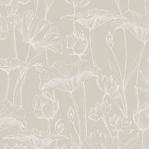 Обои современные неяркие крупные цветы, трава ZEN203