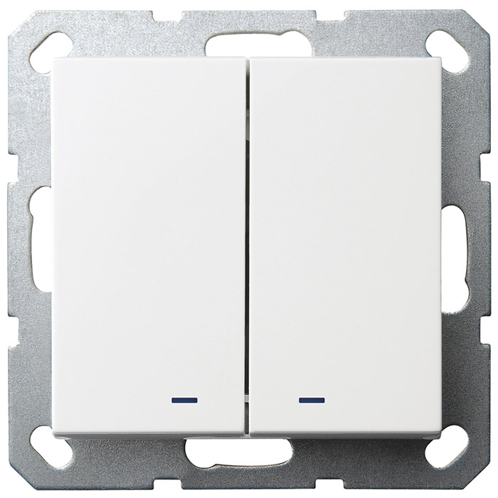 Выключатель двухклавишный со светодиодами 10A 250V~ с накладкой, цвет белый глянцевый