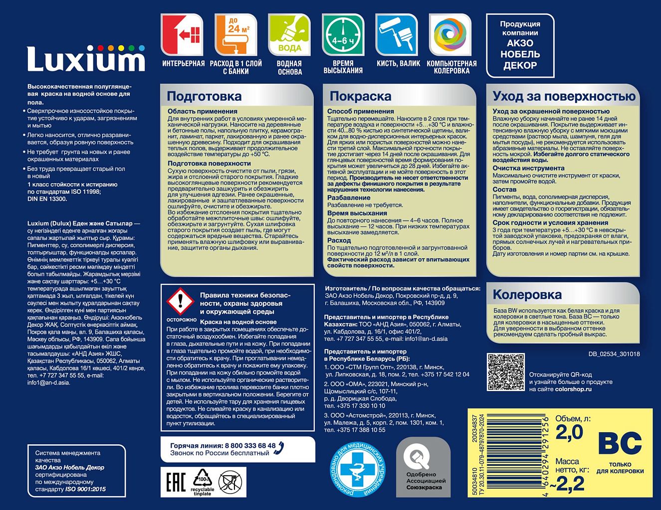 Краска Luxium by Dulux Полы и Лестницы п/глянц BC 2л
