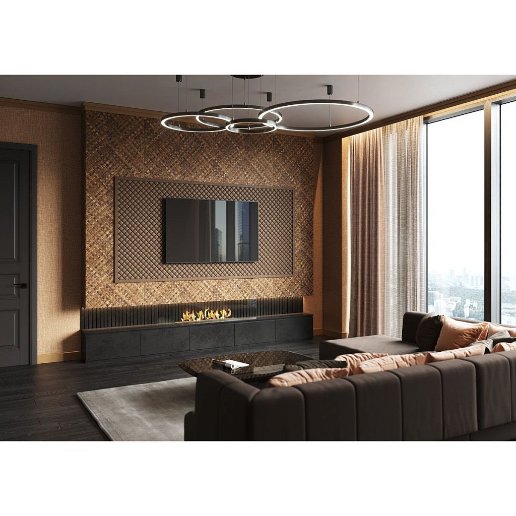 Строгий и современный профиль из серии Steps. Здесь мы разместили самую длинную сторону карниза на стене, чтобы зрительно приподнять потолок. Модель имеет срезанный угол сверху и снизу, благодаря чему создается тонкая линия тени. Разработан дизайнером Орио Тонини.