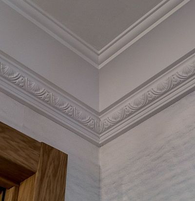 Классический карниз C301 с орнаментом в стиле ар-деко идеально подойдет для декора просторных помещений с высокими потолками. Выполнен из полиуретана высокого европейского качества Purotouch®, полностью соответствующего всем нормам экологической безопасности. Может быть окрашен любыми качественными красками. Для монтажа рекомендуется использовать специальные стыковочный и монтажный клеи Orac Decor.
